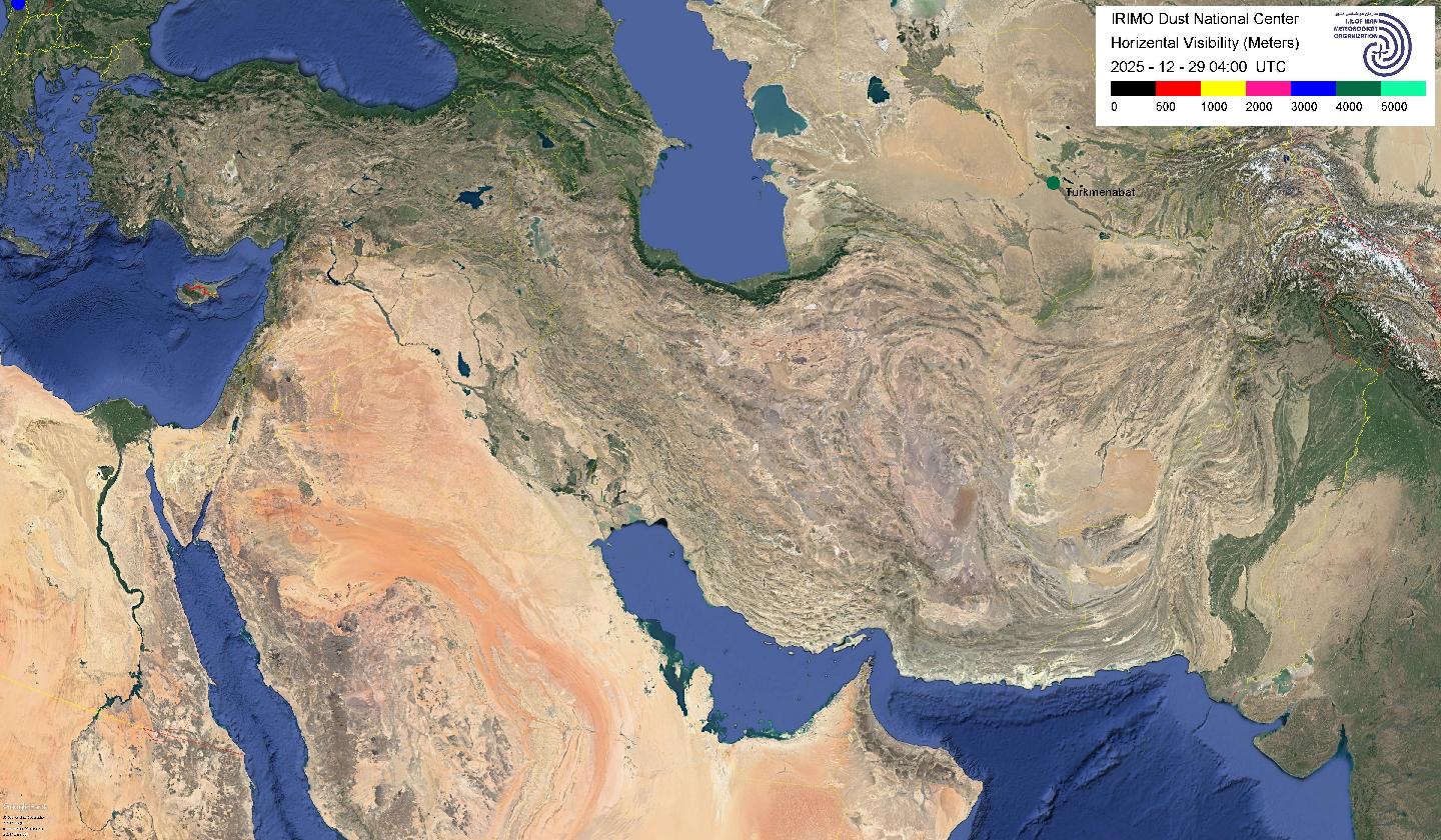 آخرین گزارش کاهش دید افقی به دلیل گرد و خاک