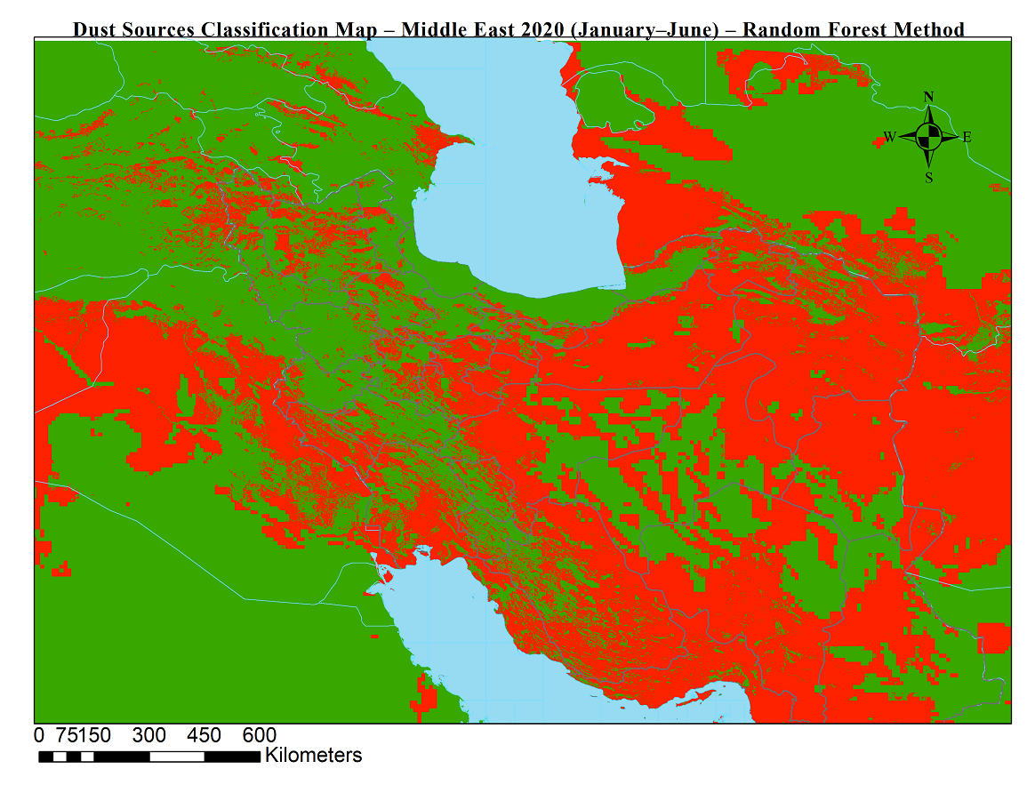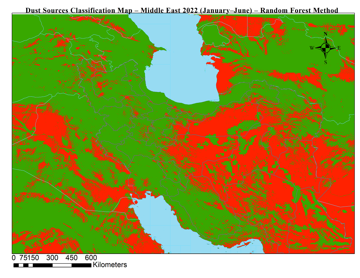 شناسایی موقعیت جغرافیایی چشمه های گردوخاک نقش بسزایی در پایش و پیش بینی طوفان های گردوخاک دارد. در این محصولات با استفاده از داده‌های ماهواره‌ای  (سنجش از دور) و الگوریتم جنگل تصادفی، چشمه‌های فعال تولید گردوخاک در خاورمیانه برای بازه‌های شش‌ماهه شناسایی و طبقه‌بندی شدند.