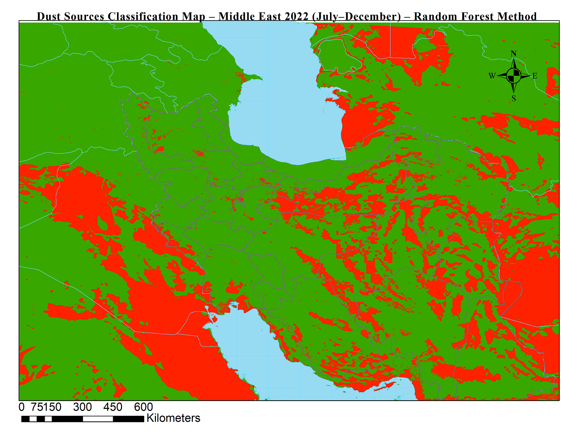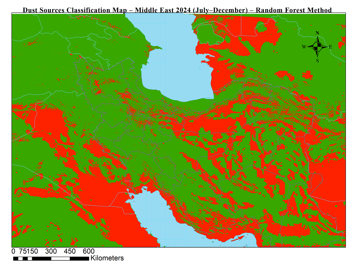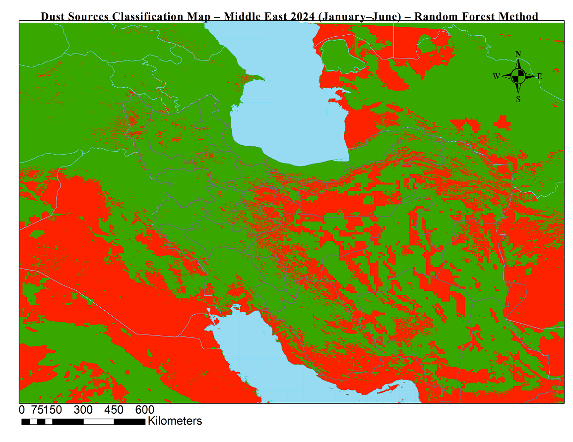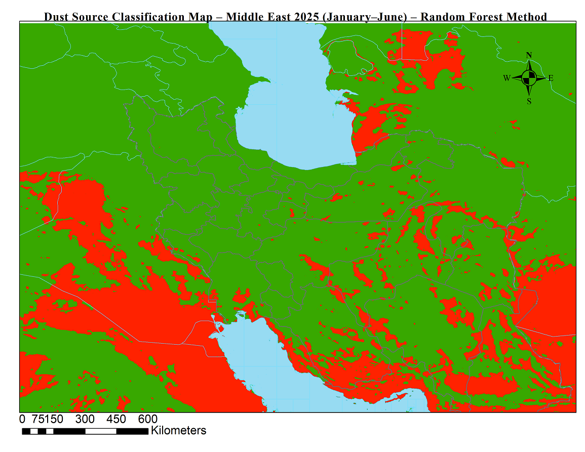 نقشه‌های تهیه‌شده برای شش‌ماهه ، مناطق با پتانسیل بالای تولید گردوخاک را به‌صورت واضح نشان می‌دهند که عمدتاً شامل دشت‌های رسوبی بین‌النهرین، نواحی خشک جنوب و مرکز عراق، مرزهای مشترک عراق-کویت-عربستان سعودی و بخش‌هایی از صحرای عربستان می‌شود. این الگوها با منابع شناخته‌شده گردوخاک منطقه همخوانی داشته و نشان‌دهنده تداوم فعالیت نسبتاً بالای این نقاط در سال‌های اخیر است.